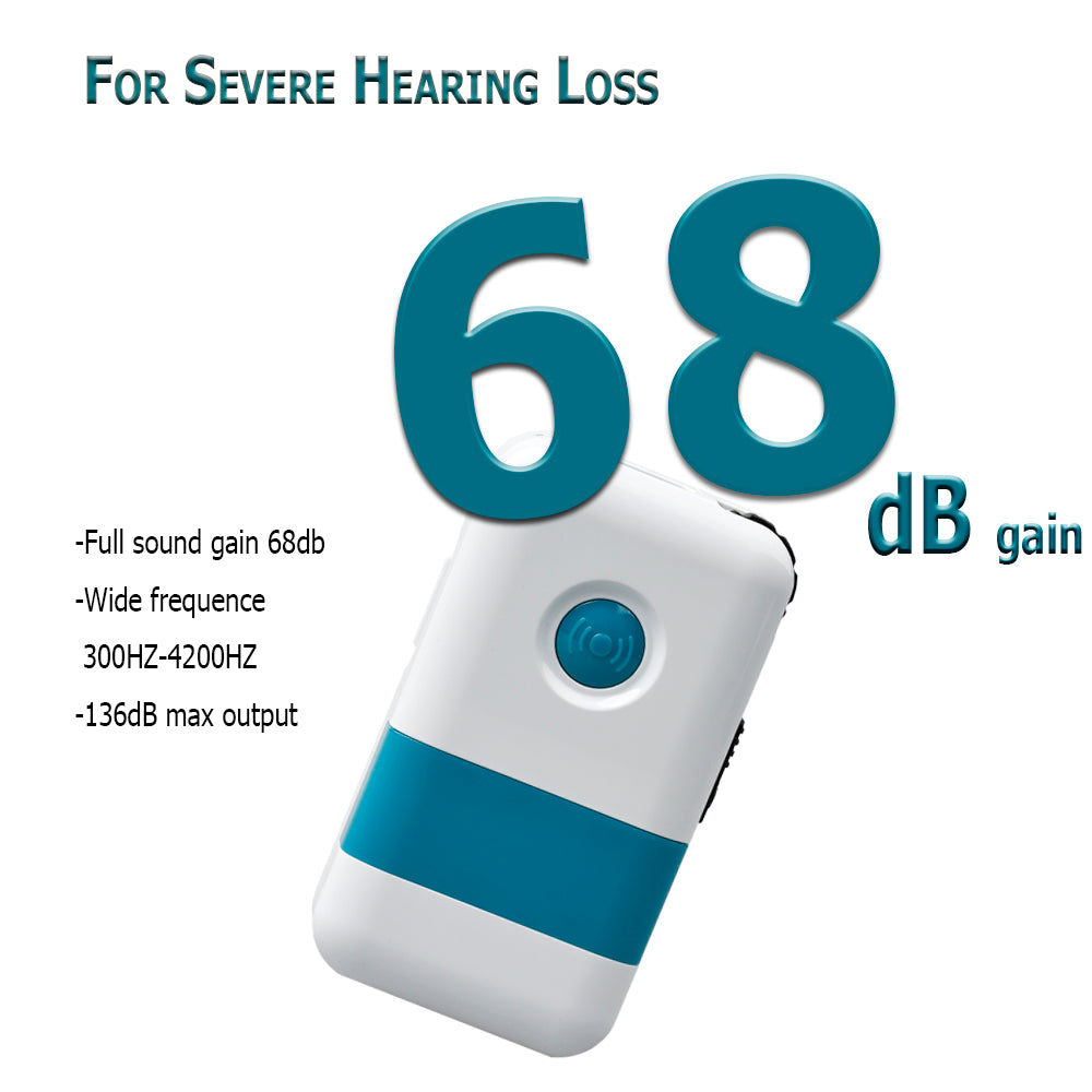 -Powerful hearing aid for severe/moderate/light hearing impaired people,supporting up to 139db, Wide Frequence 300-4200Hz.